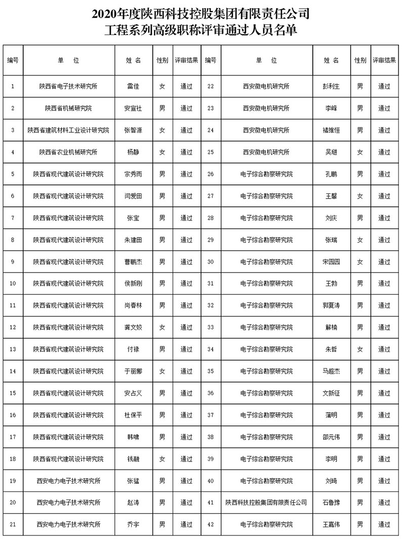 【提要形貌】经2020年度腾博汇游戏官方网站工程系列高级职称评委会评审,共42名同志通过评审,现予以公示